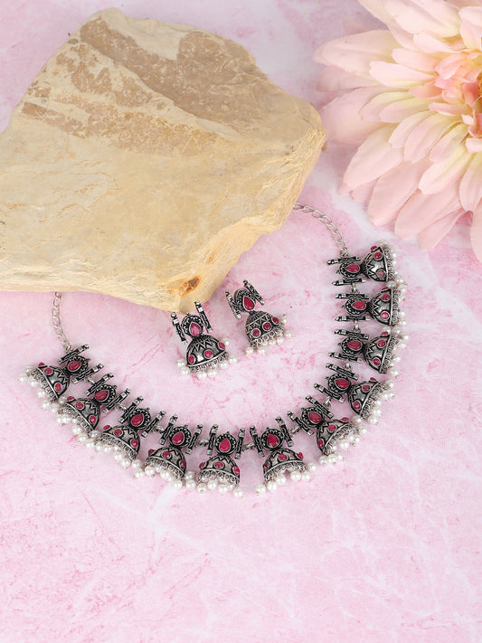 Oxidised Pink and Grey Necklace Set – Traditional Jhumka Design