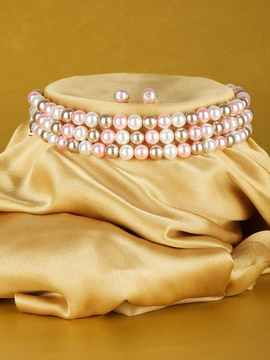 Gold-Plated Multicolor Pearl Layered Jewellery Set