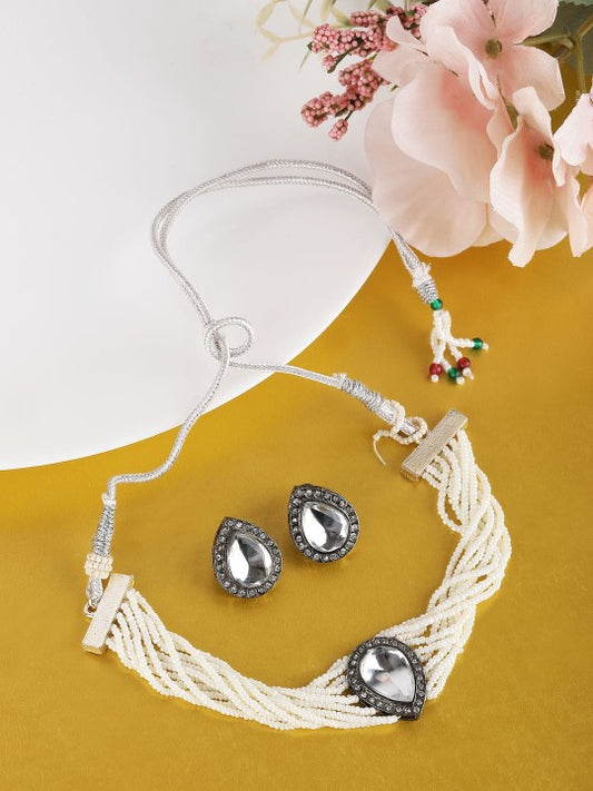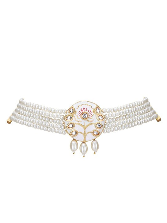 Gold-Plated White Kundan & Pearl Choker Necklace Set