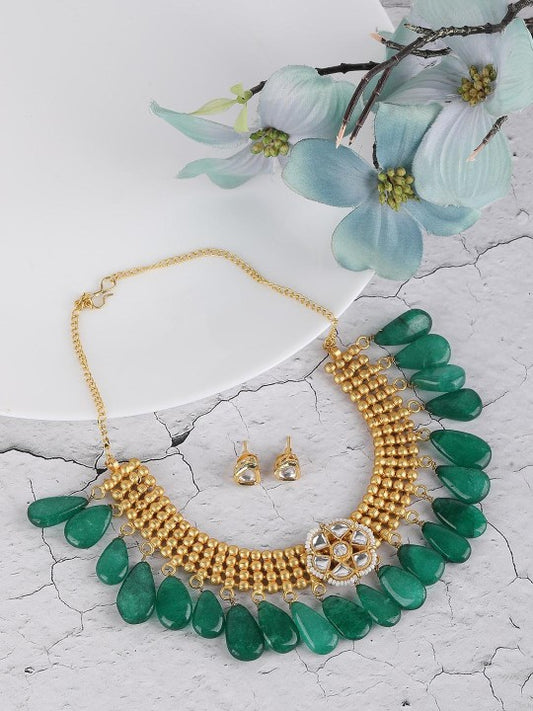 Antique Gold-Plated Choker Necklace Set with Green Beads